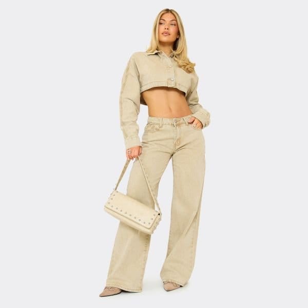 Crafted with stone denim, these wide-leg jeans feature an extreme low rise for a trendy look. Perfect for a casual, laid-back vibe.