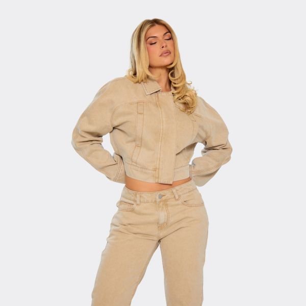 The EGO Long Sleeve Collared Oversized Cropped Jacket in Washed Stone is ideal for casual, night out.