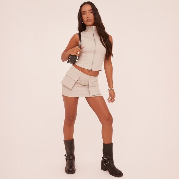 The EGO Low Rise Cargo Mini Bodycon Skirt in Stone is ideal for casual.