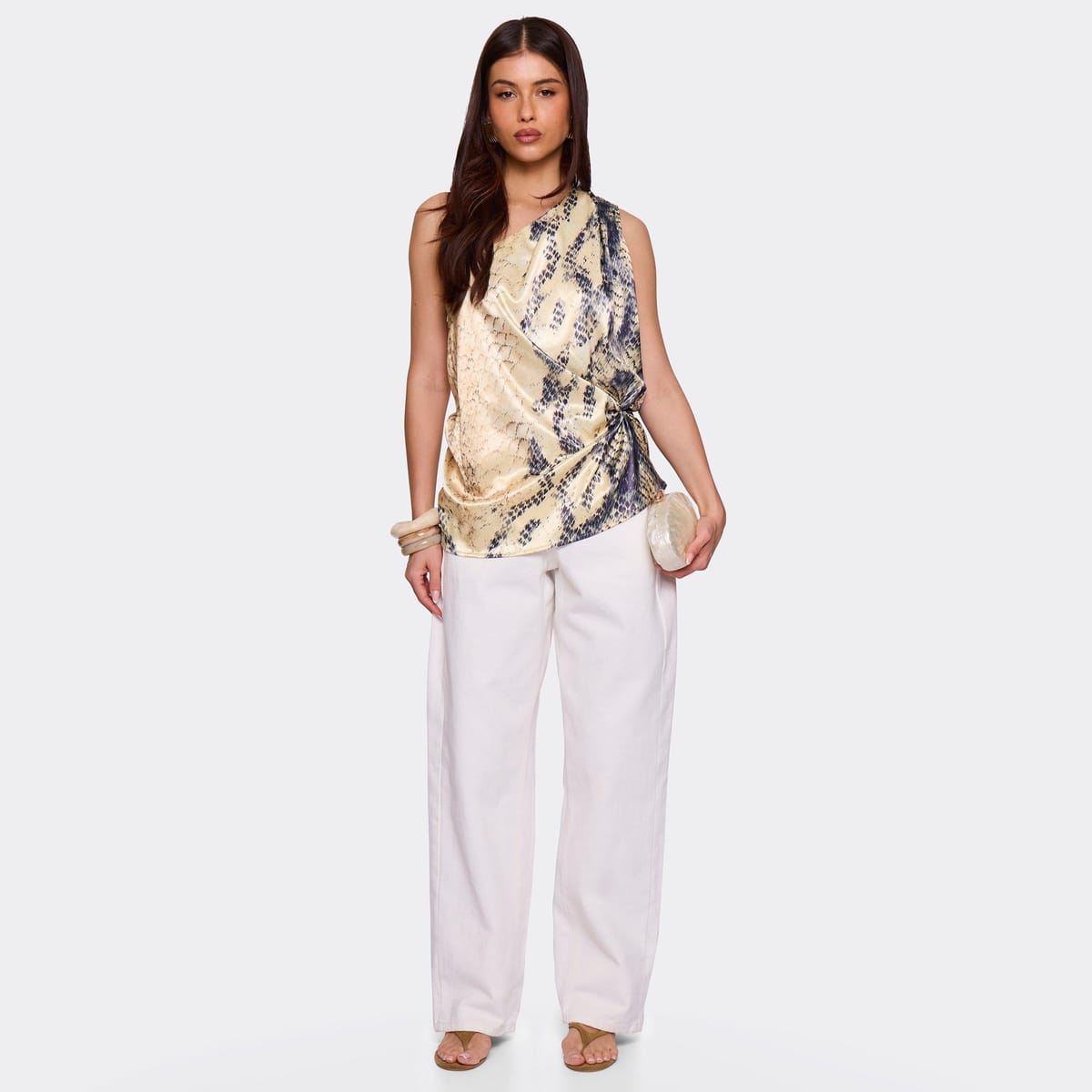 Stylish white denim barrel leg jeans by EGO. Perfect for casual outings, these jeans feature a barrel leg silhouette and a high waist for a flattering fit. Ideal for pairing with a corset top and mules.