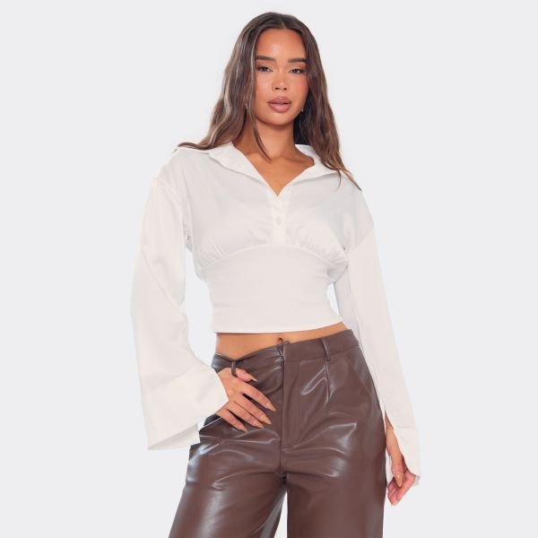 The EGO Long Sleeve Cinched Waist Detail Shirt in White is ideal for casual, brunch.