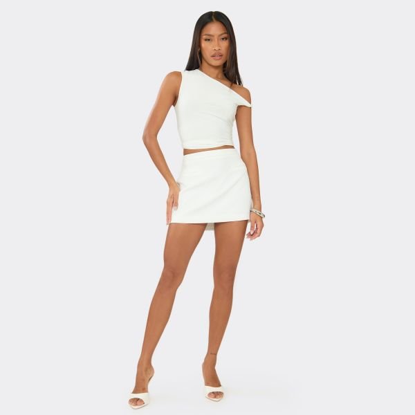 This mid rise mini skirt is a total vision, doll. Featuring a crisp white woven fabric with sophisticated pocket detailing and a sharp tailored fit, it brings a high-octane, clean-girl edge to your look. Style with a matching waistcoat and loafers for a luxe-prep aesthetic.