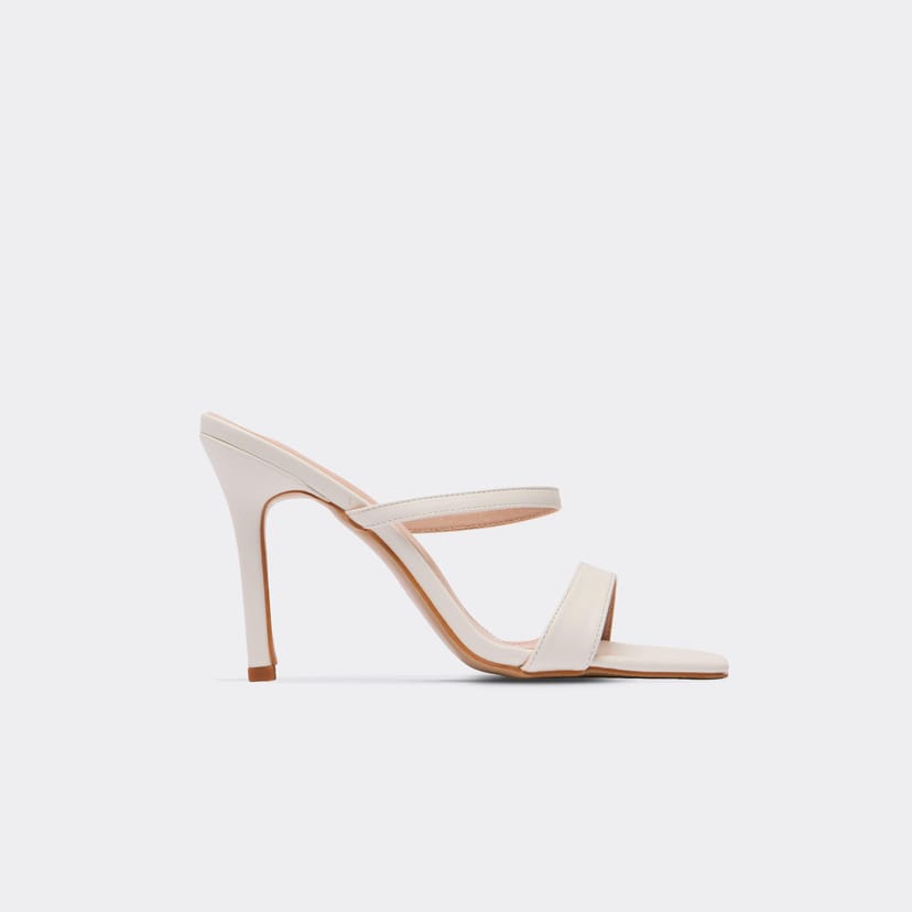 Step into holiday mode with these white faux leather heeled mules. Featuring a double strap and square toe detailing. Pair with a linen midi dress and oversized sunnies for a trending look.