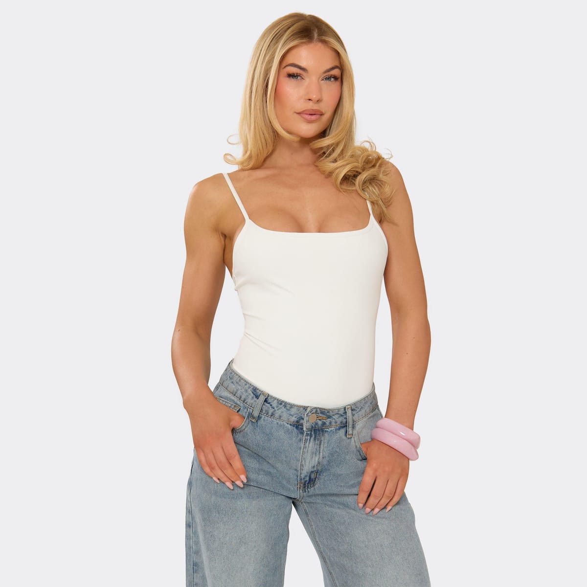 This white strappy bodysuit by EGO features a soft touch material and strappy detailing for a flattering fit. Ideal for casual summer wear, pair it with your favourite denim jeans and trainers.
