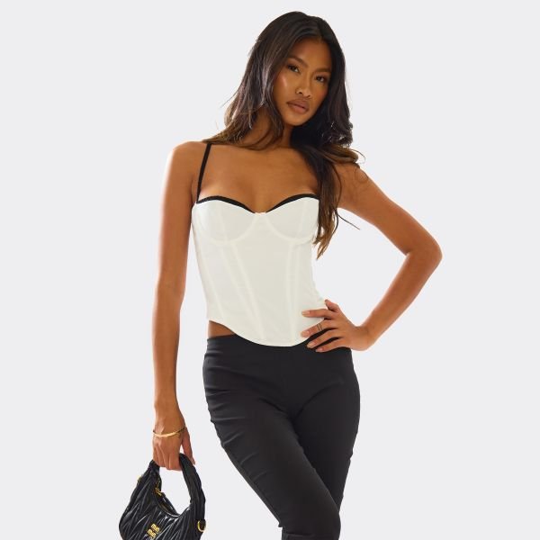 The EGO Strappy Contrast Trim Corset Top in White is ideal for night out.