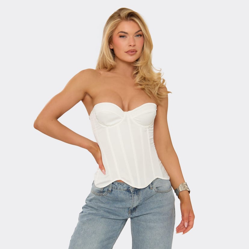 The EGO White Satin Sweetheart Neck Longline Corset Top is ideal for night-out, party, date-night.