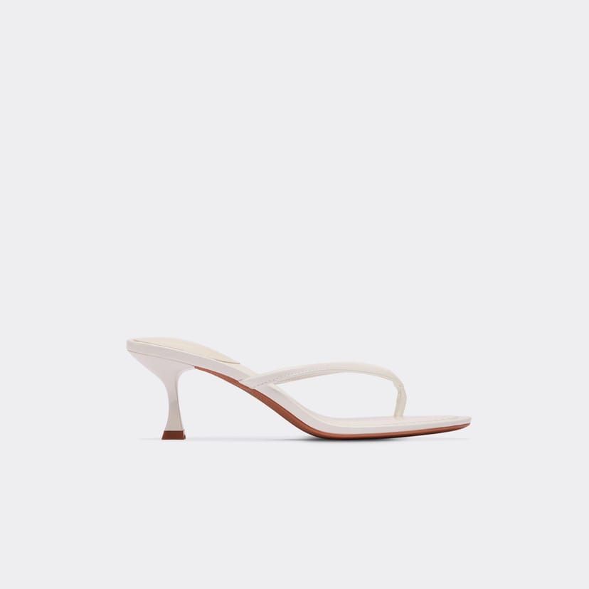 Step into summer with these holiday essentials. Featuring white patent material with thong strap and low heel detailing. Pair with a linen co-ord and a matching clutch for a look that is totally trending, girl.