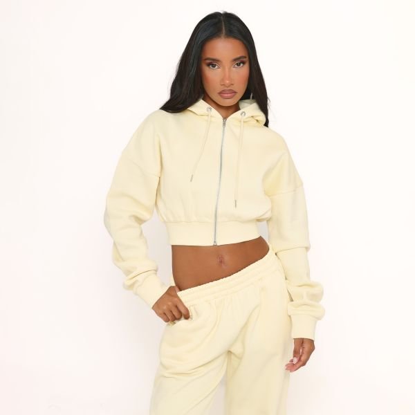 Brighten up your wardrobe with our Lemon Long Sleeve Zip Up Front Cropped Hoodie. This zip-up hoodie is the perfect pop of colour for your laid-back looks.