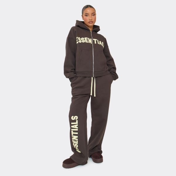 Keep it cozy but chic, doll. Featuring a chocolate brown material with a yellow graphic and low-rise drawstring waist, these wide-leg joggers are a total mood. Style with the matching hoodie for a high-end, it-girl aesthetic.