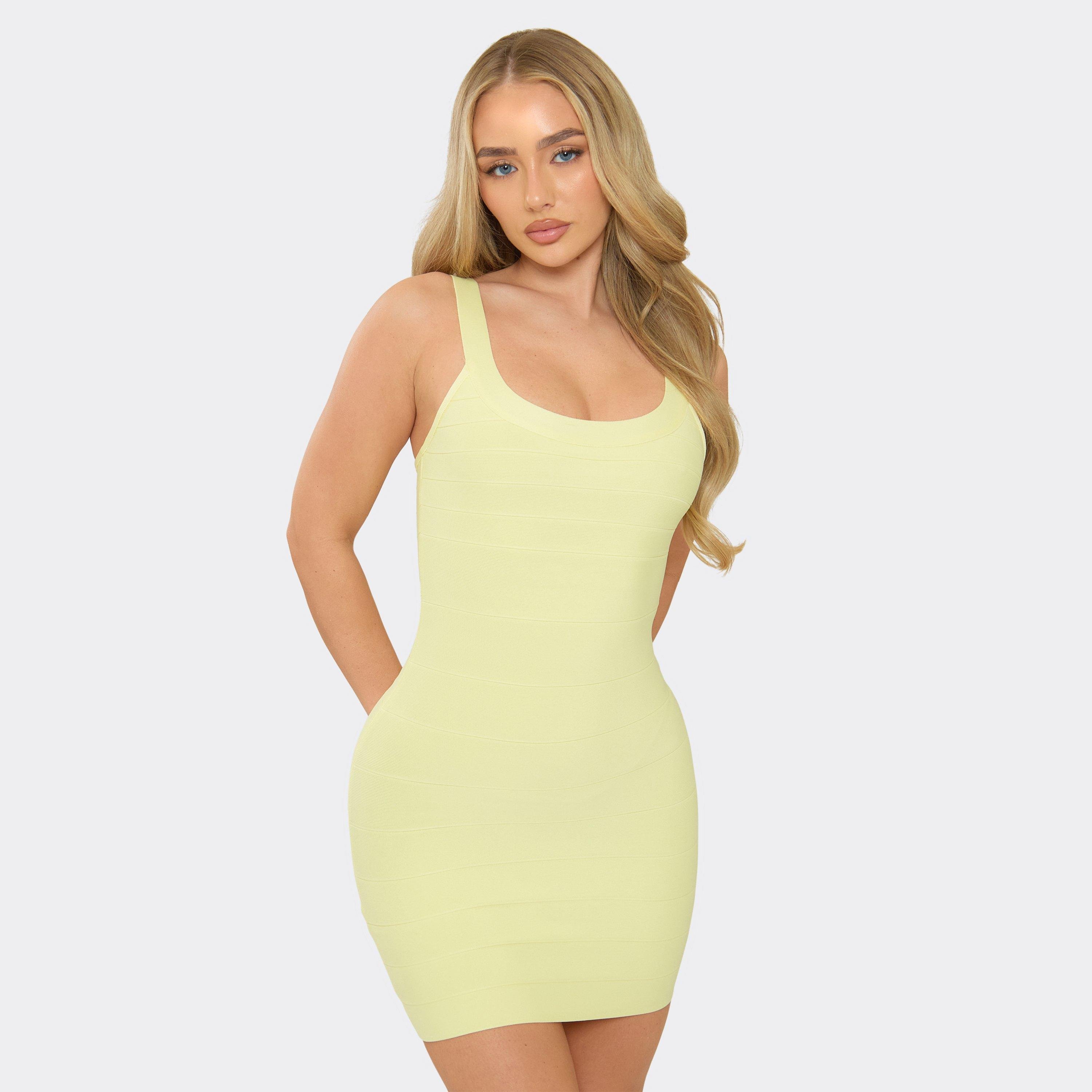 The EGO Lemon Bandage Scoop Neck Mini Dress is ideal for party, summer event, date night.