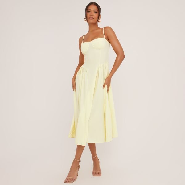 The EGO Strappy Pleated Skater Midaxi Dress in Yellow is available in sizes C06, S.