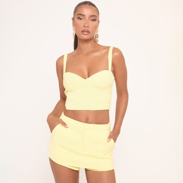 The EGO Sweetheart Neckline Tailored Crop Top in Yellow is ideal for casual, party.
