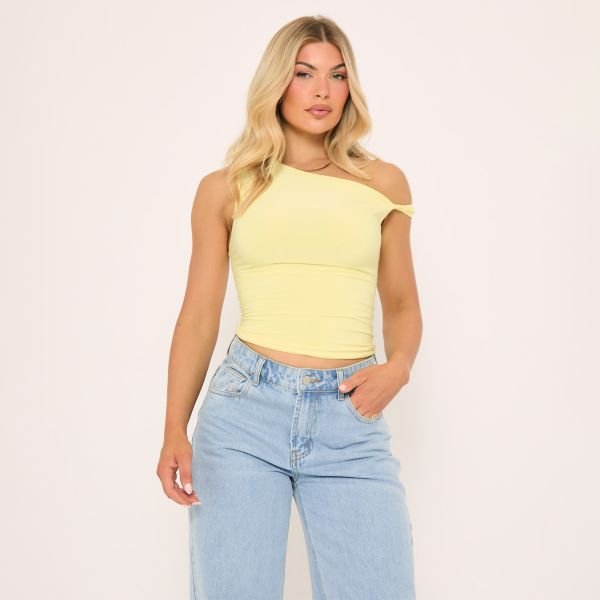 The EGO Twist Strap Detail Top in Yellow Slinky is ideal for casual, evening.