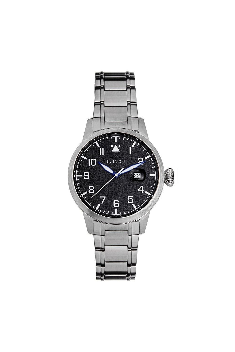 Stylish Elevon Stealth watch in black with a stainless steel bracelet and mineral crystal. Features include a quartz movement, date display, and 5ATM water resistance. Ideal for everyday wear.
