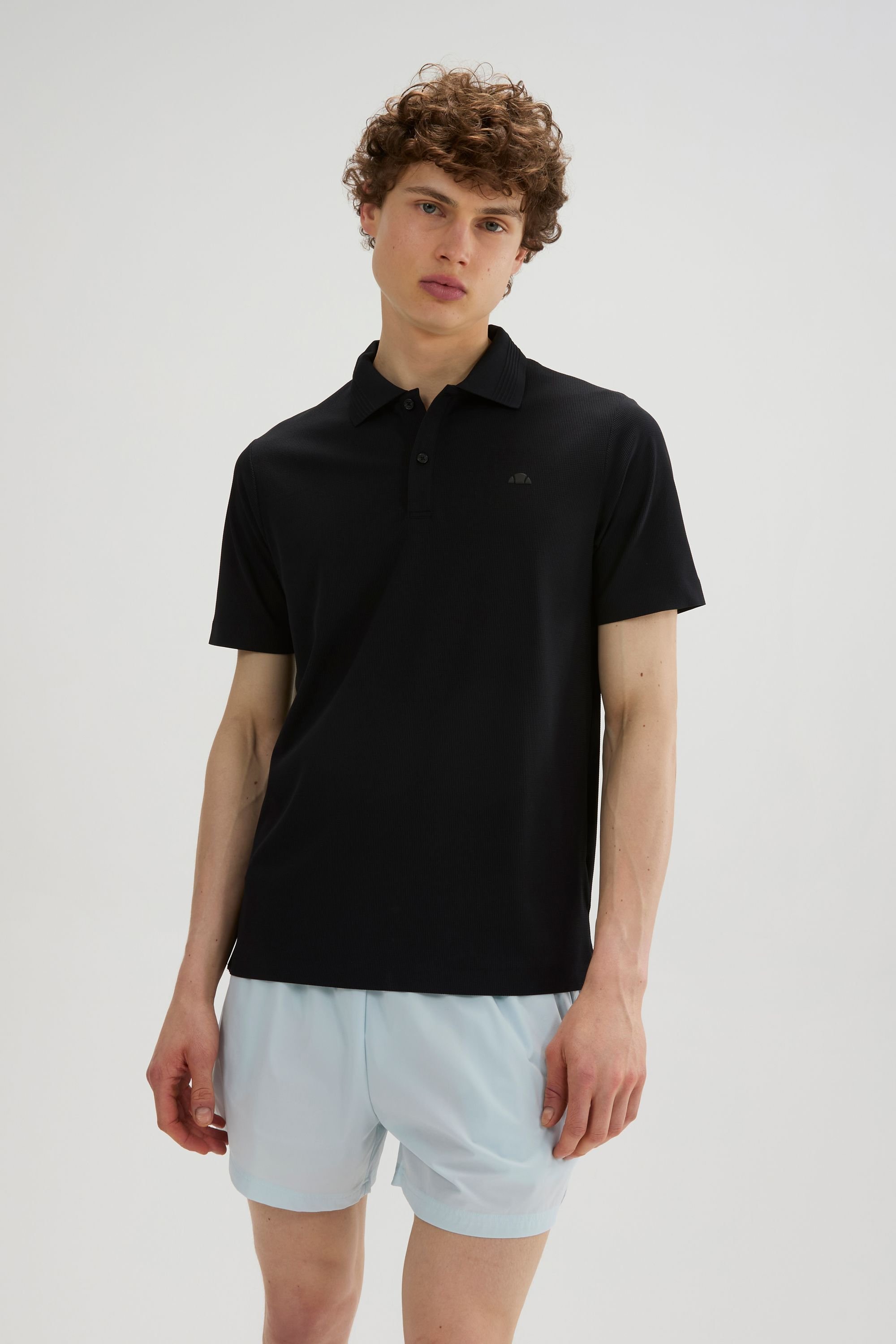 Stylish black polo shirt by Ellesse made from lightweight polyester pique. Features built-in moisture-wicking and antibacterial technology for comfort and freshness. Ideal for casual and sporty occasions.