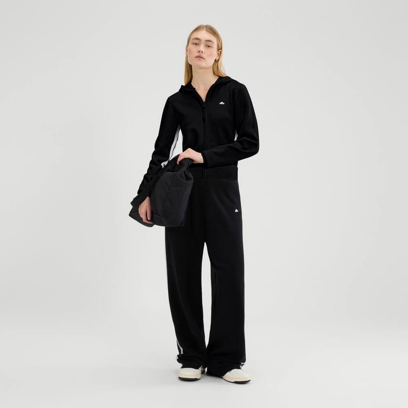 Sporty Ellesse Laneisa FZ Jacket in black featuring a stretch poly-viscose knit with contrast stripe detailing and a full zip through the front. Ideal for casual wear or active lifestyles.