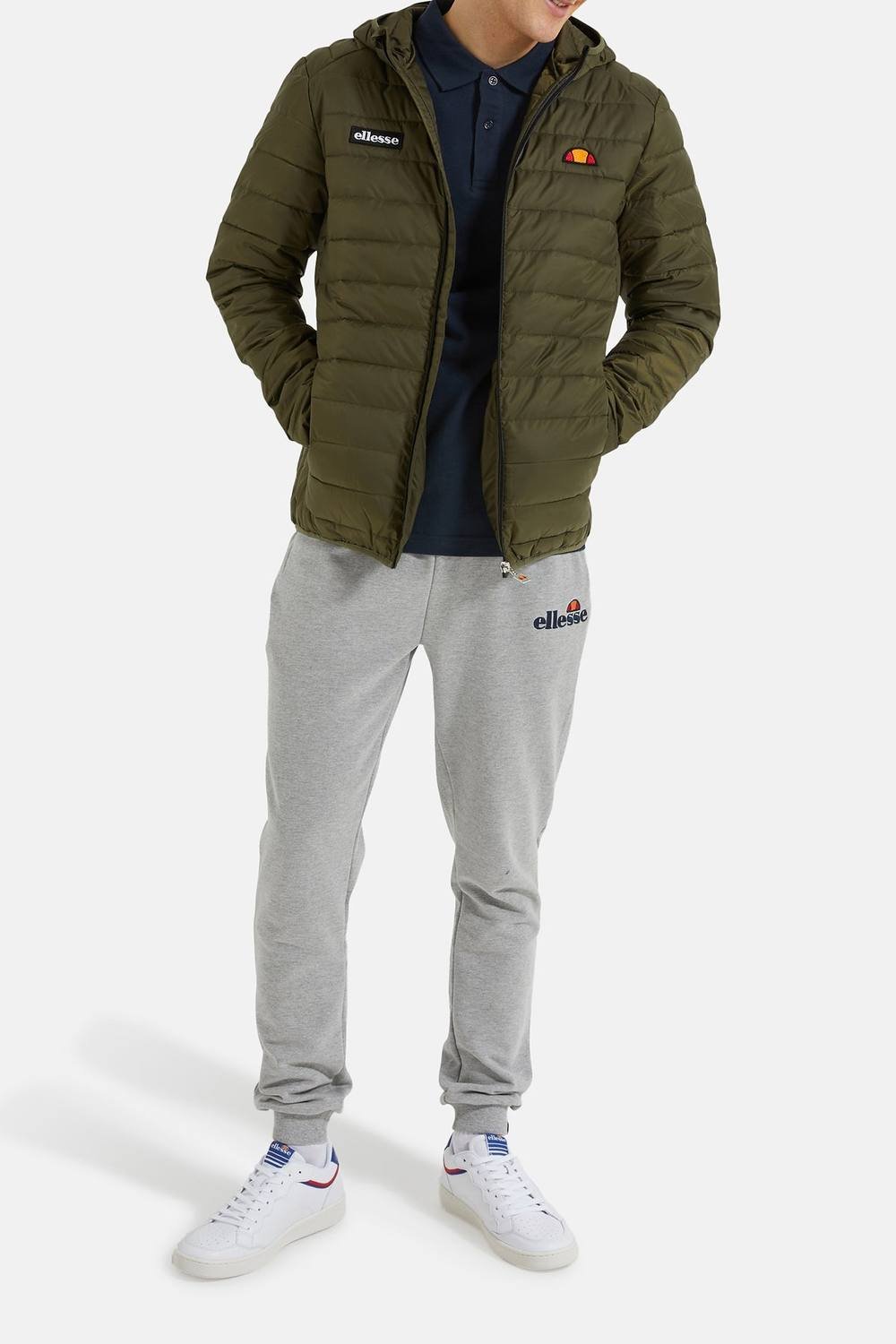 The Ellesse Men's Lombardy Padded Jacket in Khaki is made from polyester, cotton.