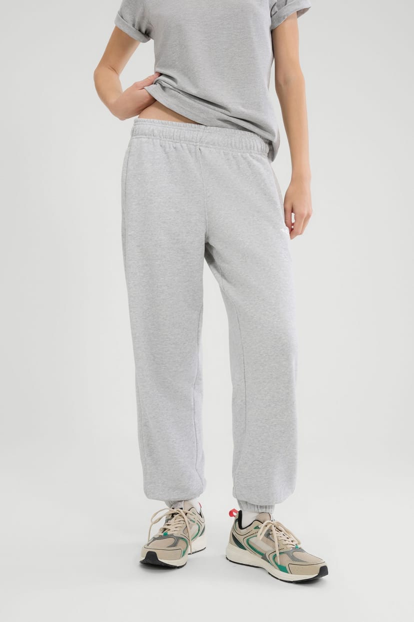Relaxed-fit joggers in light grey peached loopback cotton. Designed for ultimate comfort, these joggers feature dense embroidery branding. Ideal for everyday wear.
