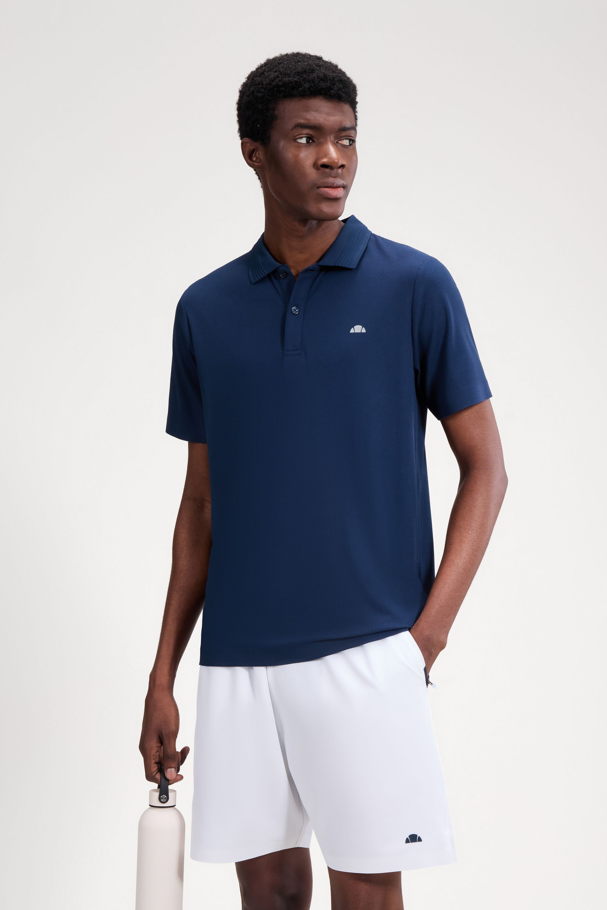 Stylish Ellesse polo shirt in navy featuring a lightweight polyester pique fabric. Designed for modern performance with moisture-wicking and antibacterial technology, it ensures you stay fresh and focused. The reflective print and clean detailing add a modern touch.