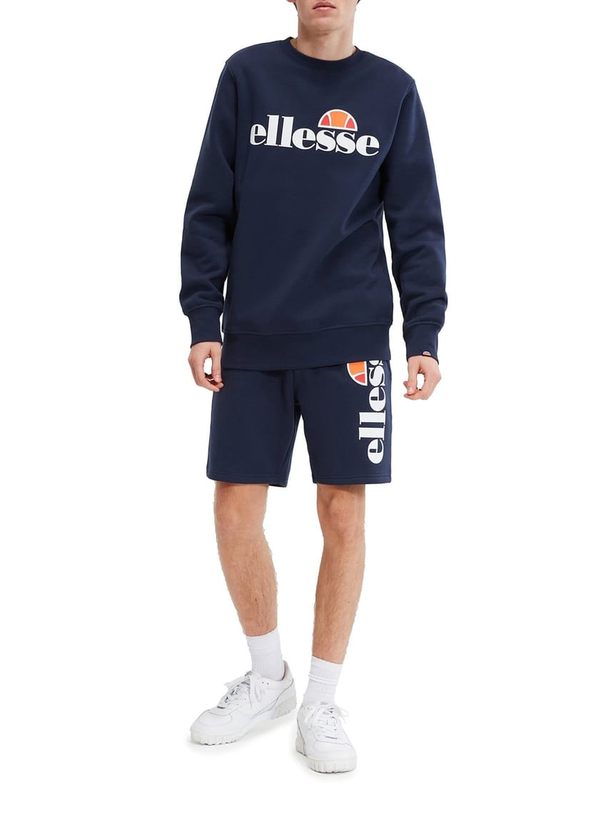 Stylish navy sweatshirt crafted from high-quality brushback fleece. Features ribbed cuffs and hems and the iconic Ellesse branding. Ideal for casual wear.