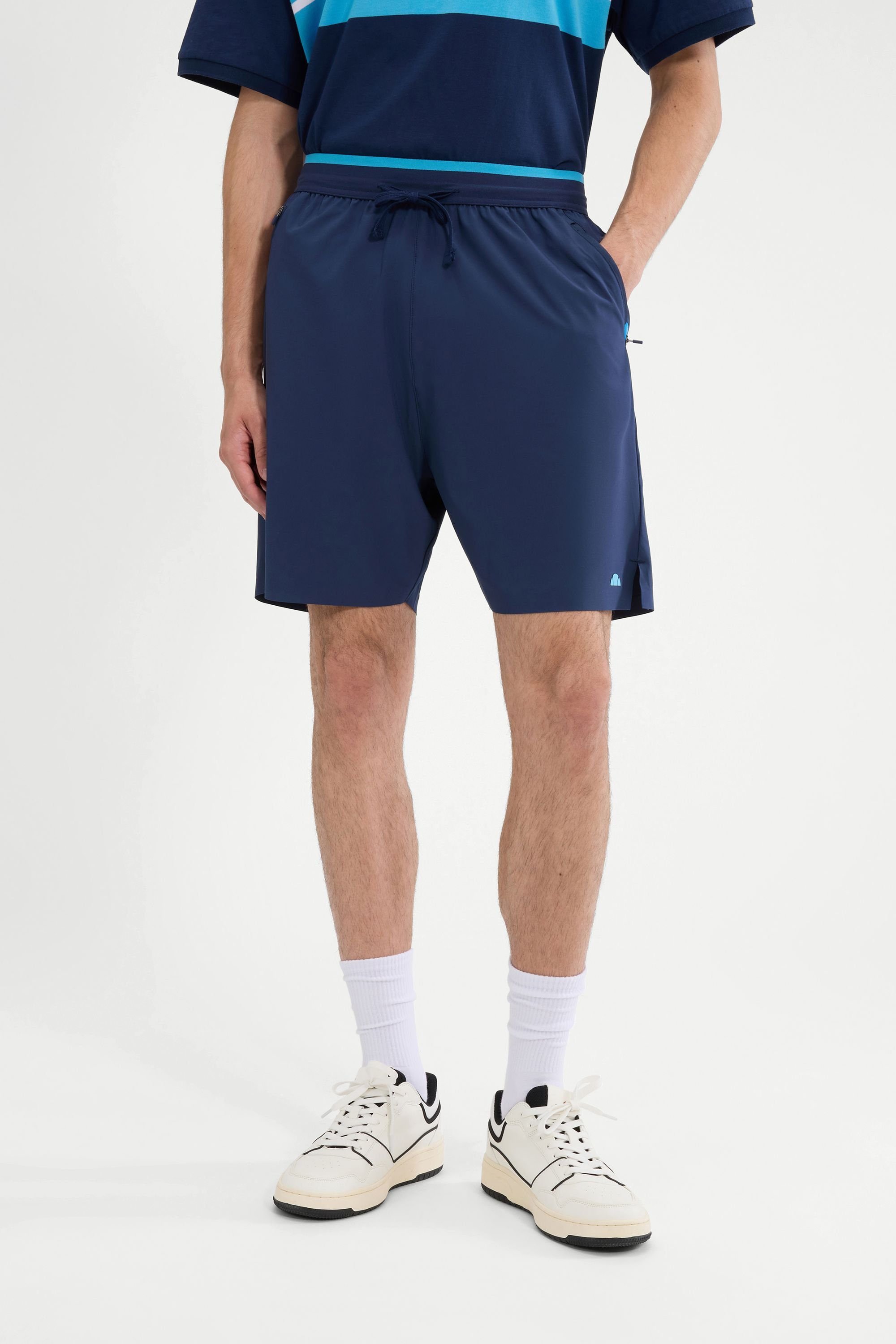 Stylish Navy shorts by Ellesse featuring an engineered waistband and 4-way stretch fabric for ultimate comfort. Ideal for active wear or casual outings.