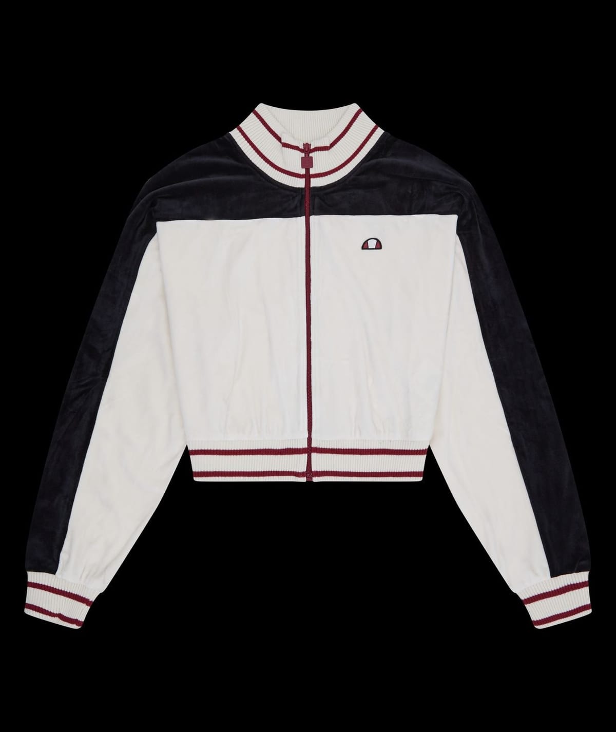 The Ellesse Off-White Velour Cropped Track Top is made from velour.