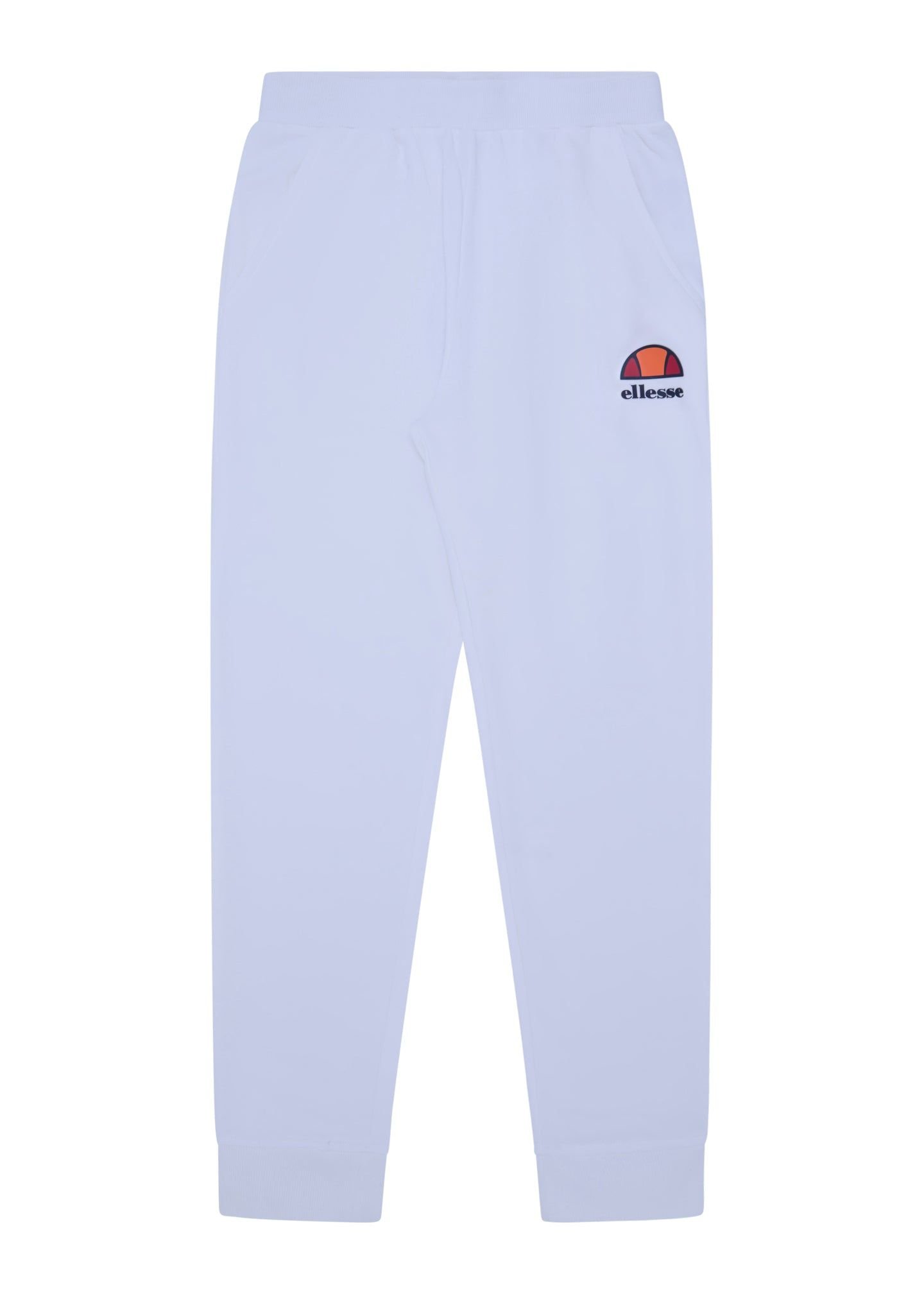 Modern Ellesse Saxcony Jog Pant in white with a contemporary aesthetic. Made from soft cotton blend, these joggers offer a relaxed fit and elasticated waistband for comfort. Ideal for casual wear.