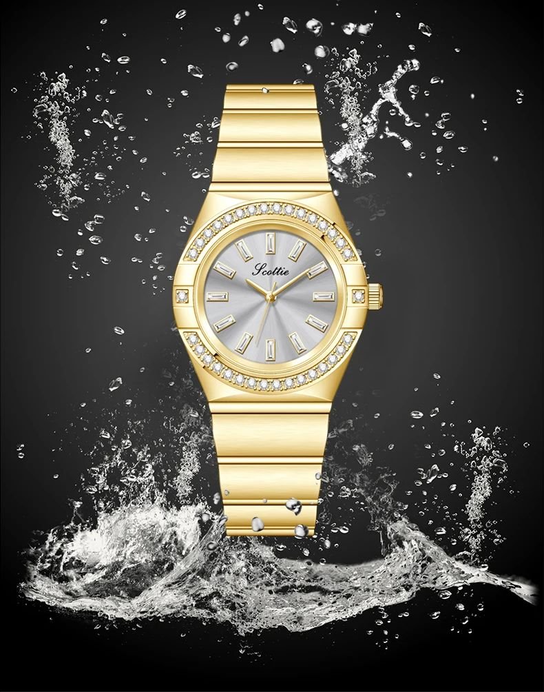Elevate your evening look with the Belgravia Gold Ladies Watches featuring a crystal bezel, silver sunray dial, and gold bracelet strap. A radiant, refined timepiece designed for special occasions, celebrations, and elegant nights out.
