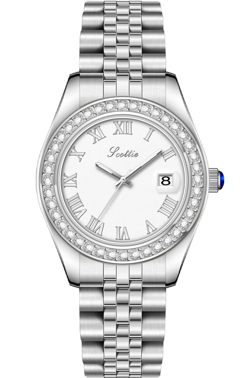 Sophisticated Emma Loves Diamonds watch in metallic silver with a crystal dial and diamond pavé bezel. Designed for women who appreciate elegance and precision.
