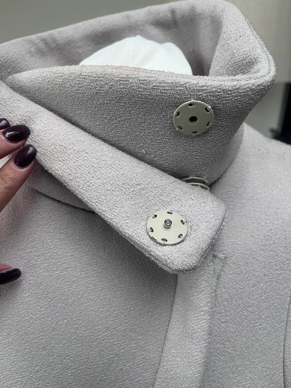 The Emporio Armani High-Neck Coat in Light Cream is available in sizes S.