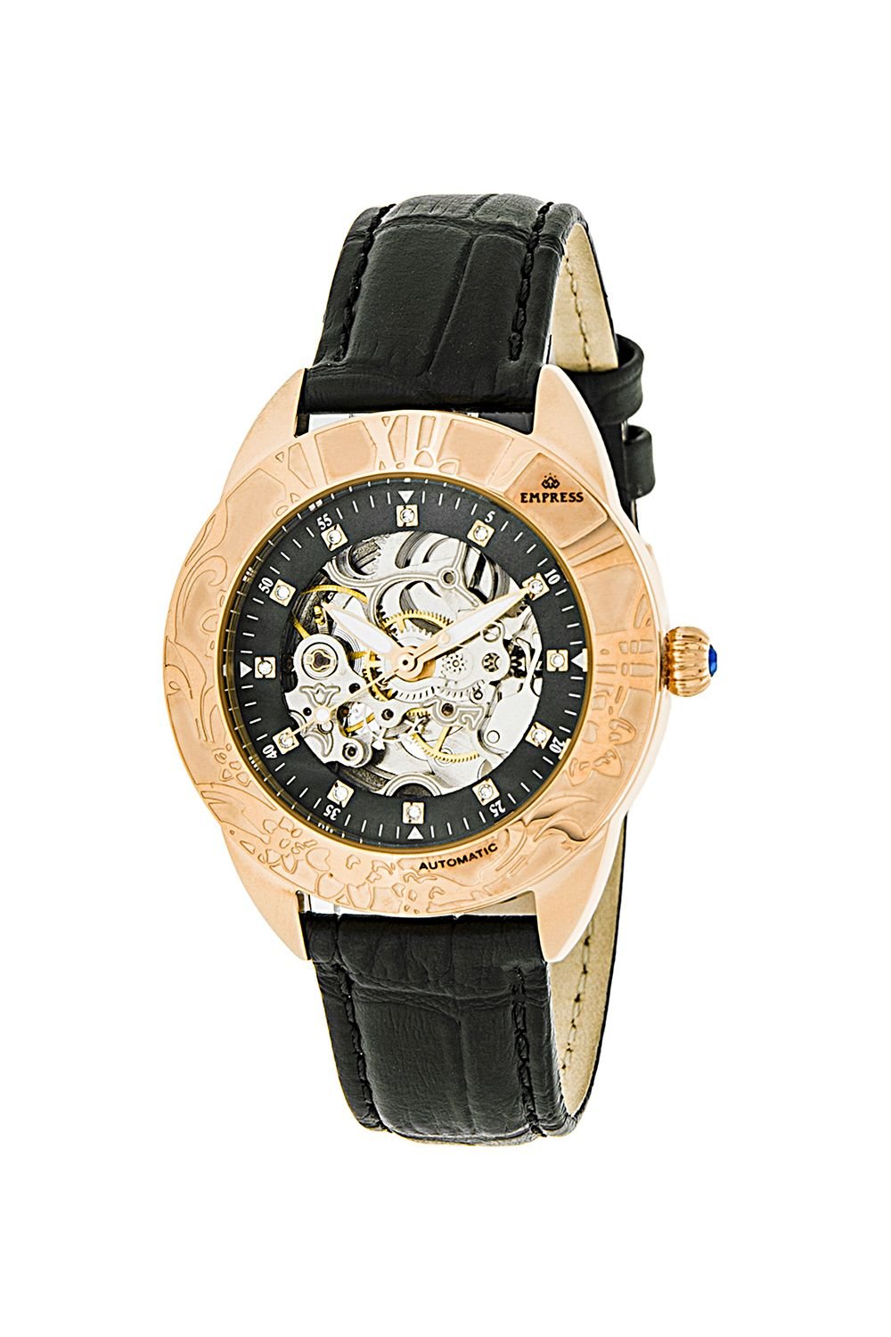 The Empress Godiva Automatic MOP Leather-Band Watch in Black is made from genuine leather, crystal, stainless steel.