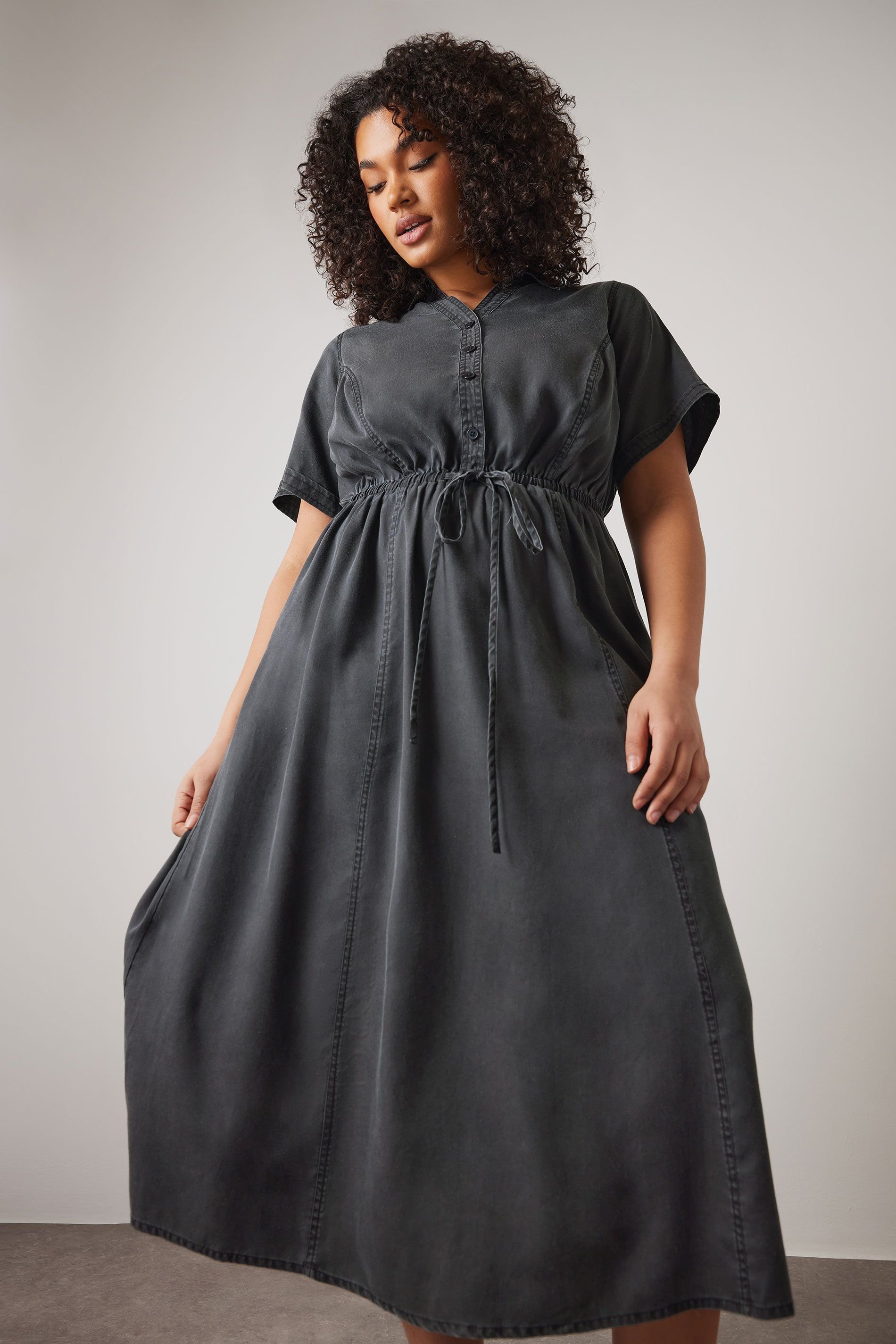 The Evans Black Lyocell Denim Shirt Dress is ideal for casual, everyday.