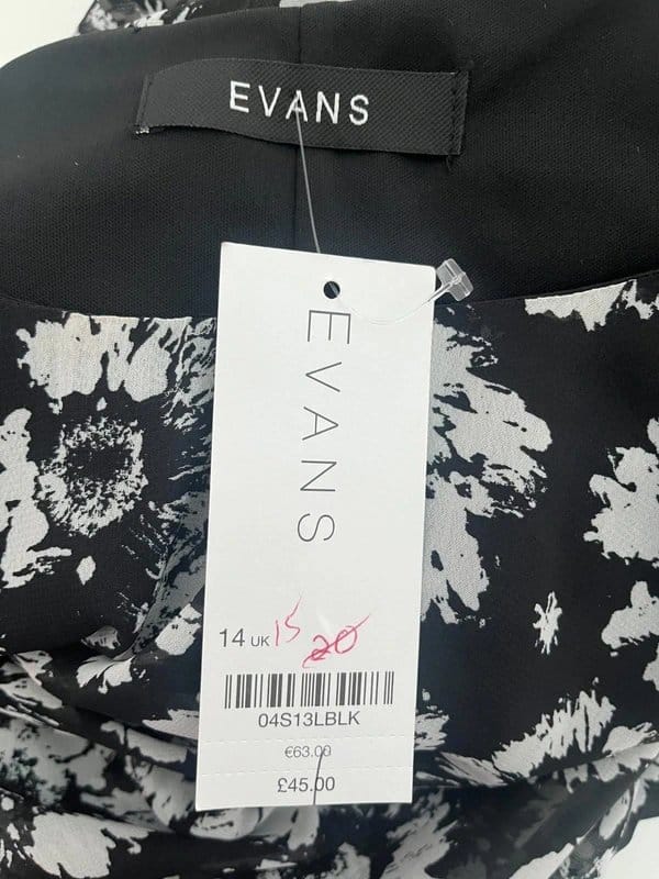 The Evans Black Floral Chiffon Shift Dress Size 14 is available in sizes XL.