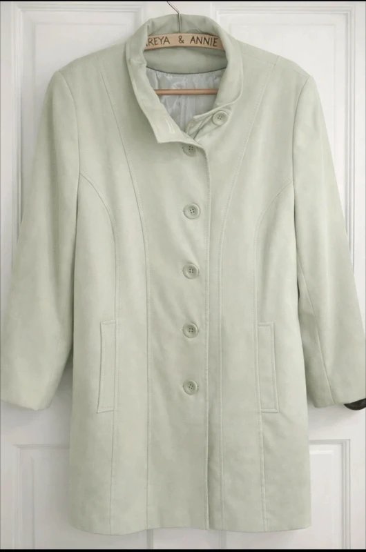 This elegant mint green waistcoat by EWM is a versatile addition to your wardrobe. Crafted from suede, it features a classic button-front design with a collared neckline and long sleeves. The fitted silhouette and mid-length cut make it perfect for layering over dresses or blouses. Ideal for casual and semi-formal occasions, this waistcoat adds a touch of sophistication to any outfit.