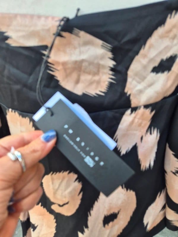 The F&F Black & Beige Animal Print Satin Midi Dress is available in sizes L.