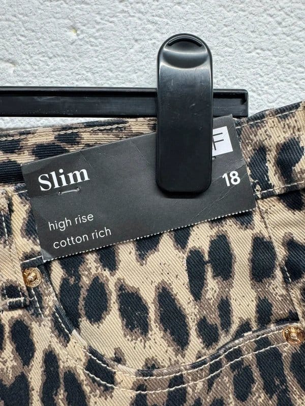 The F&F Brown Leopard Print High Rise Slim Jeans UK 18 is available in sizes L.