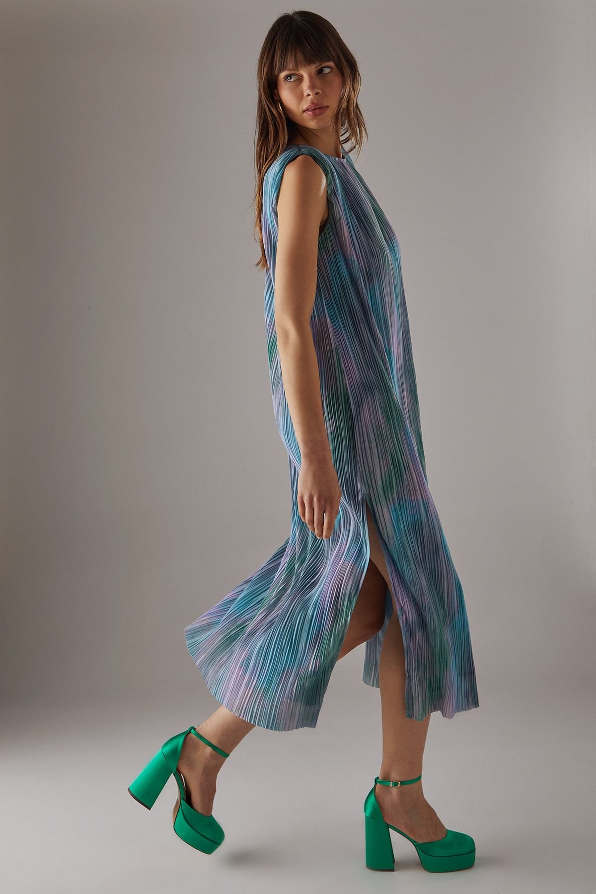 The Faith Green Satin Pleated Midi Dress is available in sizes 3, 4, 5, 6, 7, 8.