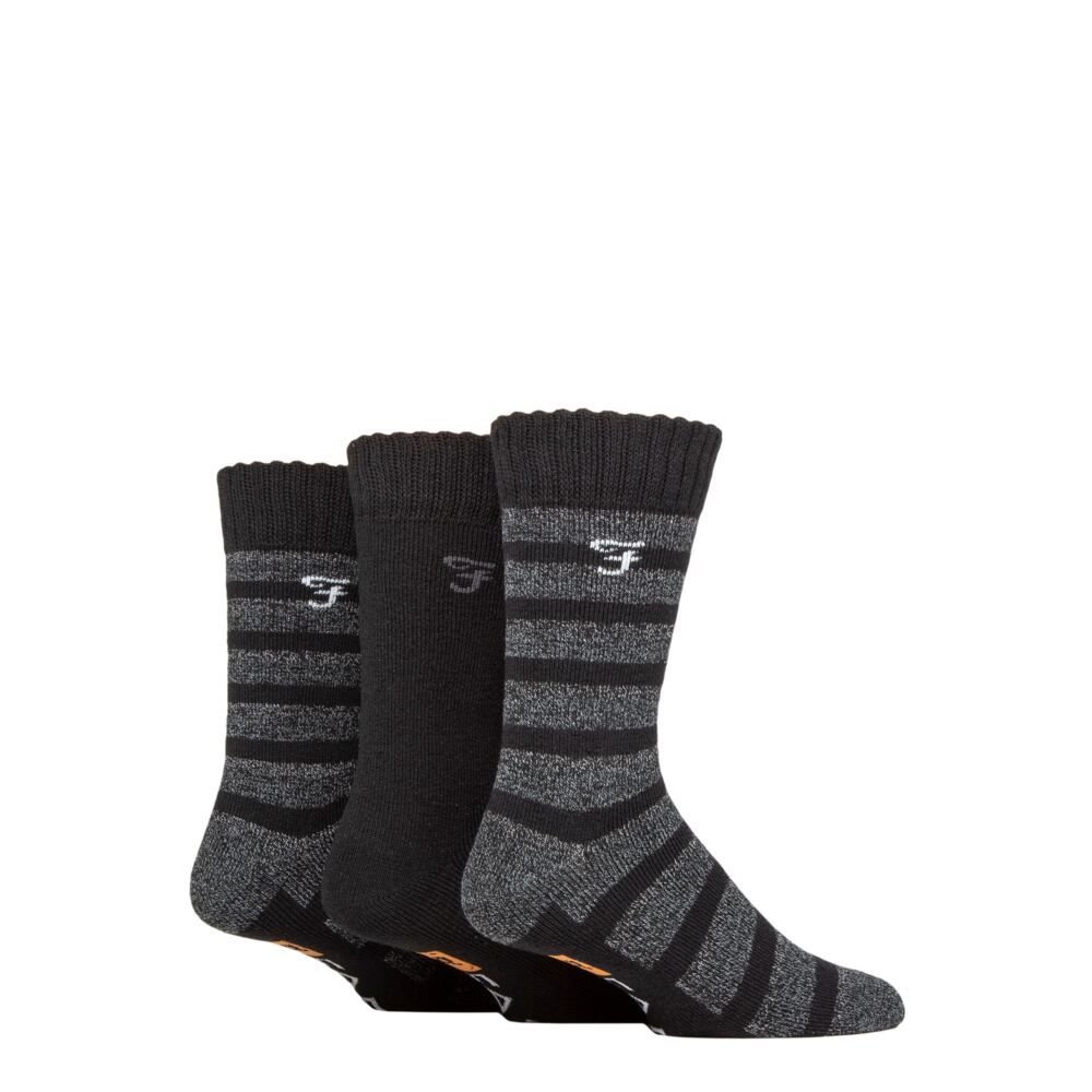 The Farah Men's Black Striped Cushioned Boot Socks 3 Pair is ideal for casual, everyday, work.