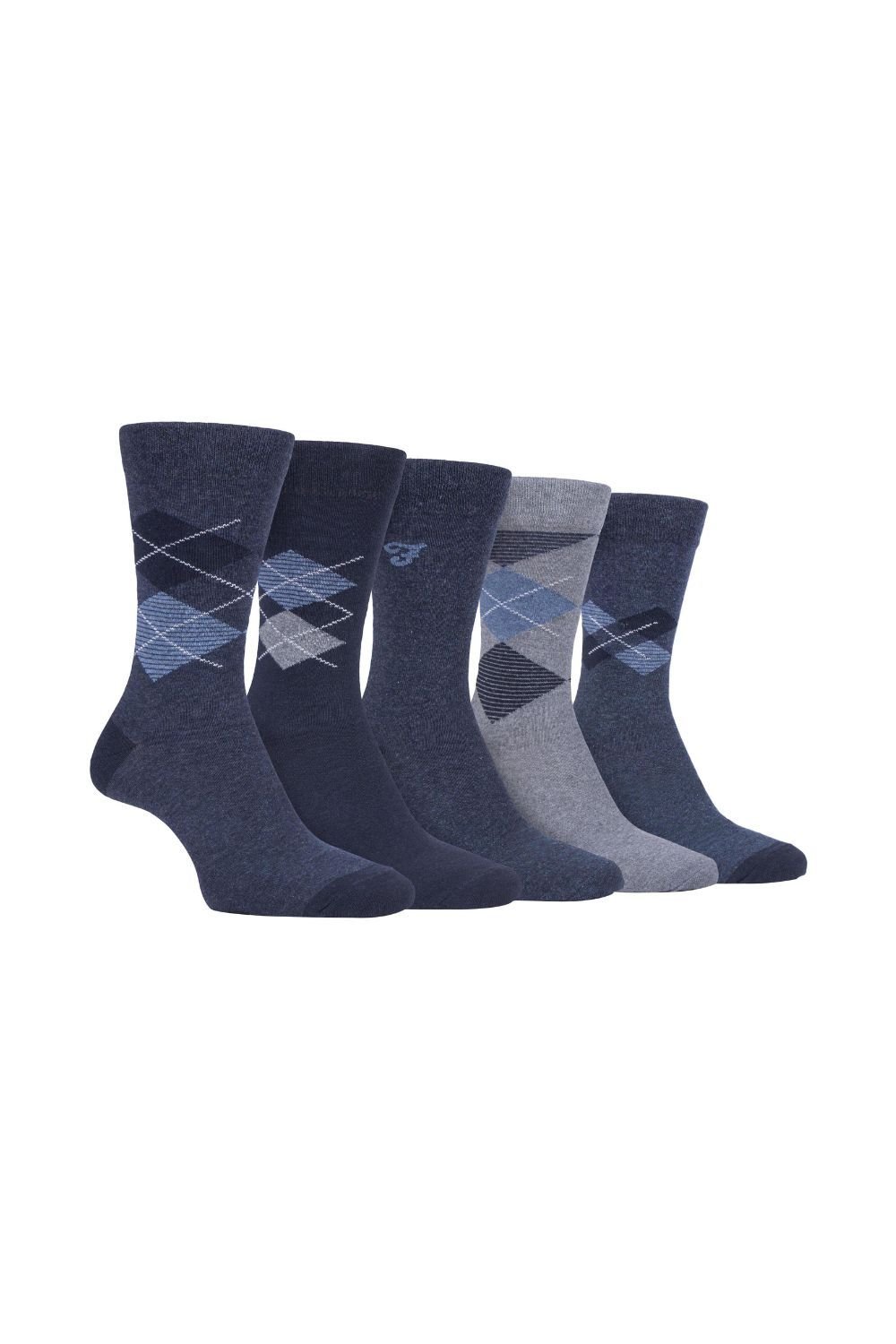 The Farah Men's 5 Pack Argyle Patterned Cotton Socks in Blue is available in sizes 6-11.