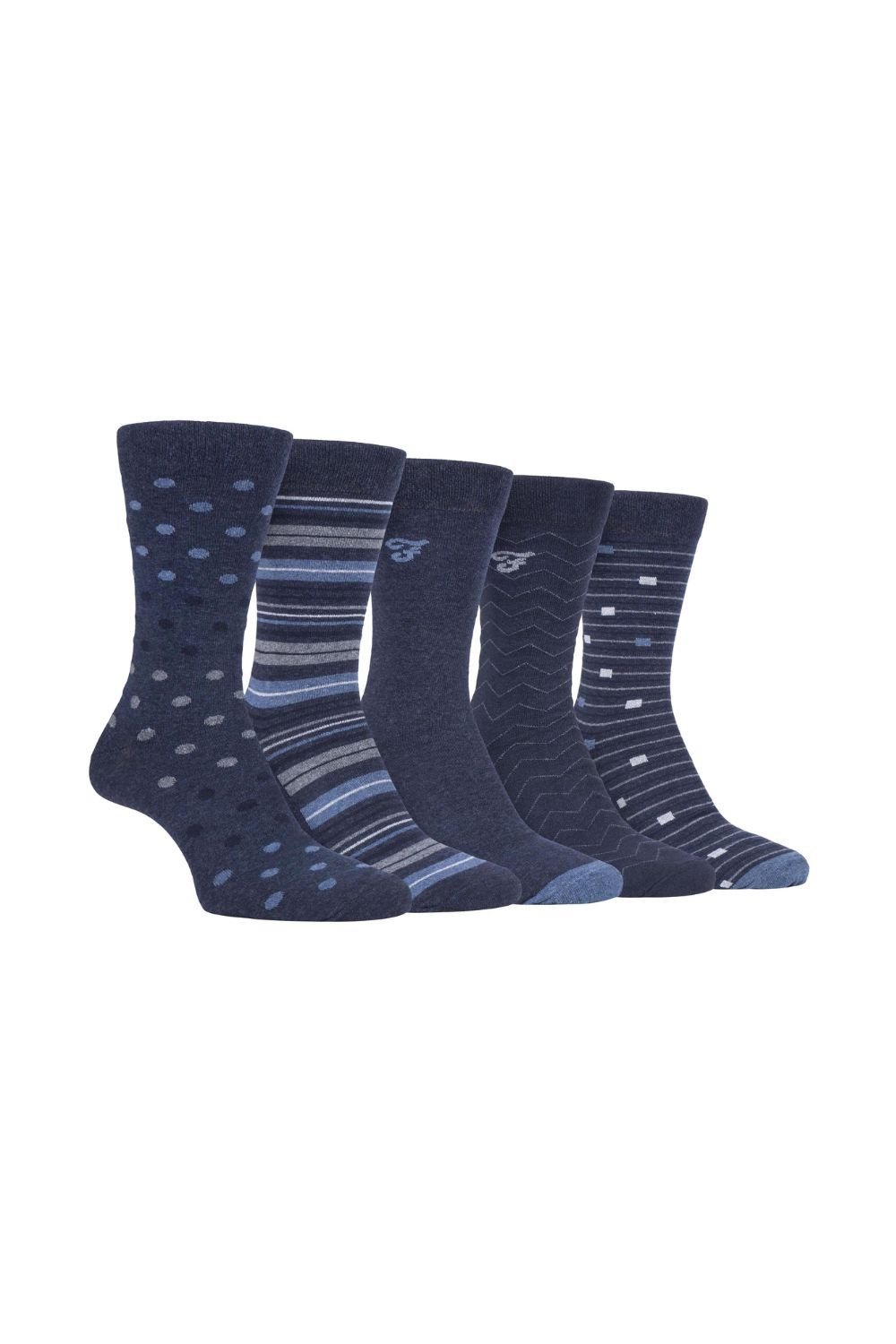 The Farah Men's 5 Pack Polka Dot Patterned Cotton Socks in Blue is available in sizes 6-11.