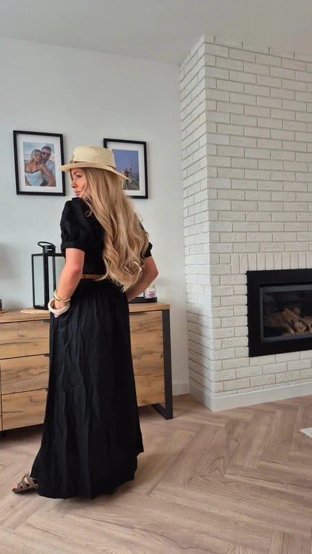 This black long maxi dress from Fashion Nova is perfect for summer holidays. Made from lightweight fabric, it features pockets and a figure-flattering silhouette. Ideal for casual days or dressed up with accessories.