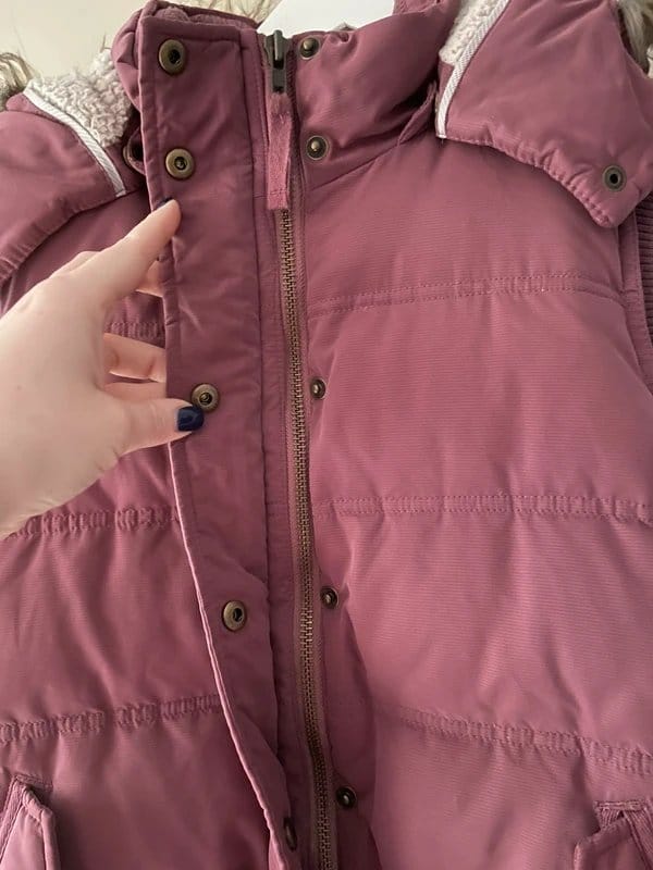 Gorgeous Fat Face puffer gilet in a beautiful dusty rose colour. Perfect for layering during cooler months.