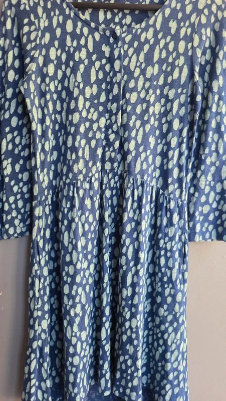 The FatFace Blue Green Spot Print Skater Dress is available in sizes S.