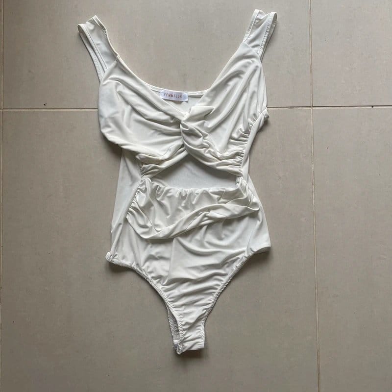 “Pair with high-waisted cream trousers and white sandals for a chic beach look.”