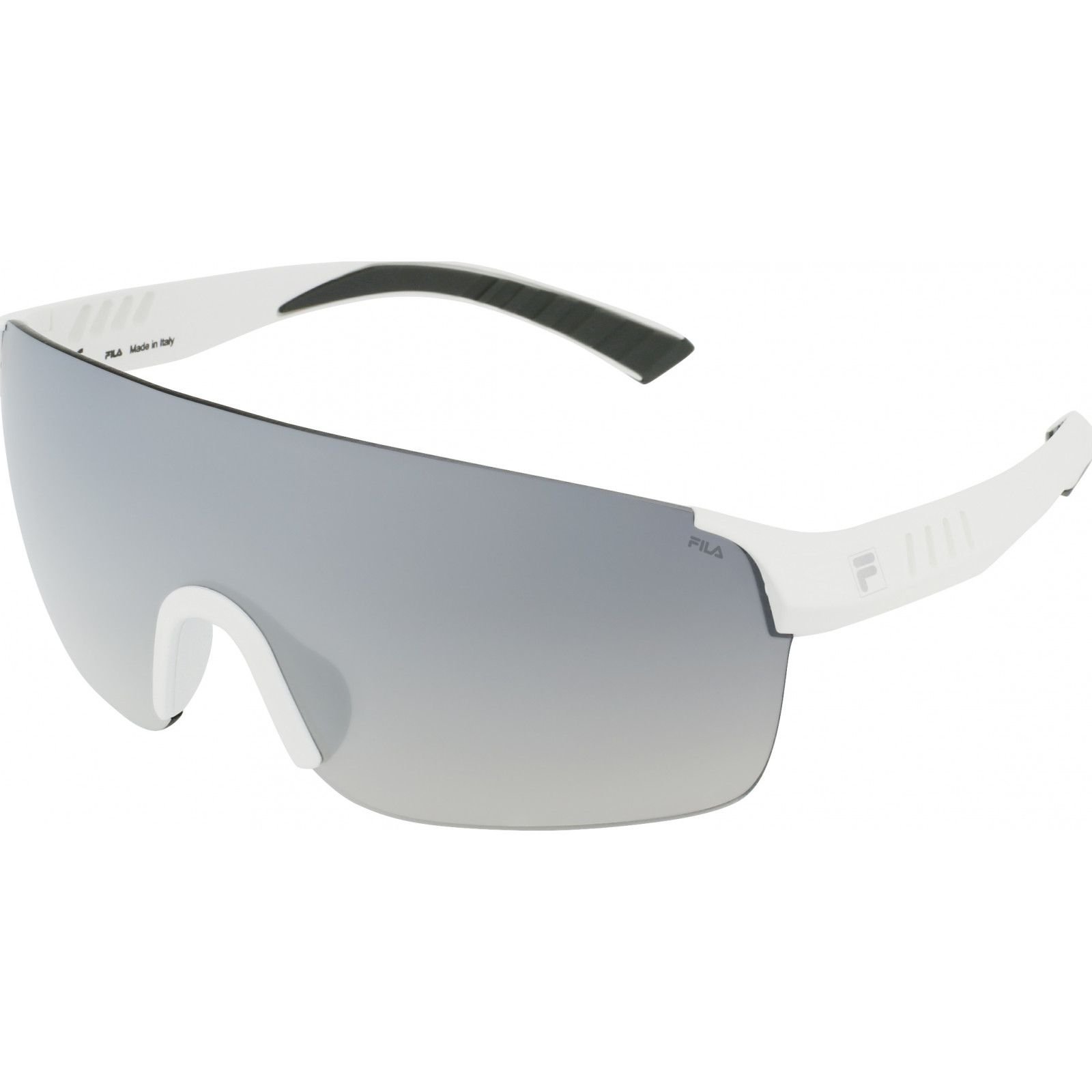 Sleek white sunglasses from Fila with a modern design. Featuring durable materials and protective lenses, these sunglasses are perfect for outdoor activities.