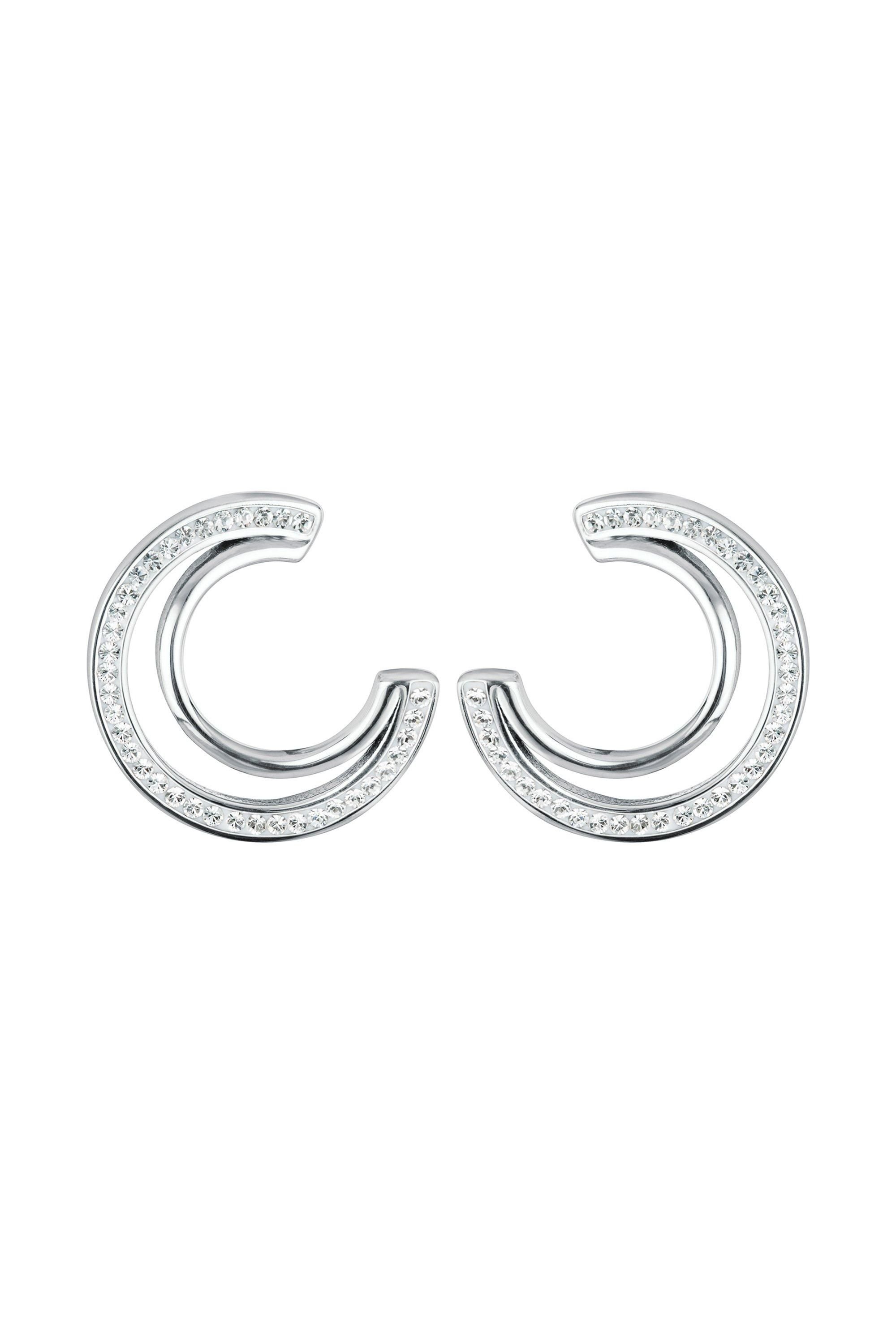 The The Fine Collective Silver Crystal Double Crescent Stud Earrings is ideal for evening, party, date-night.