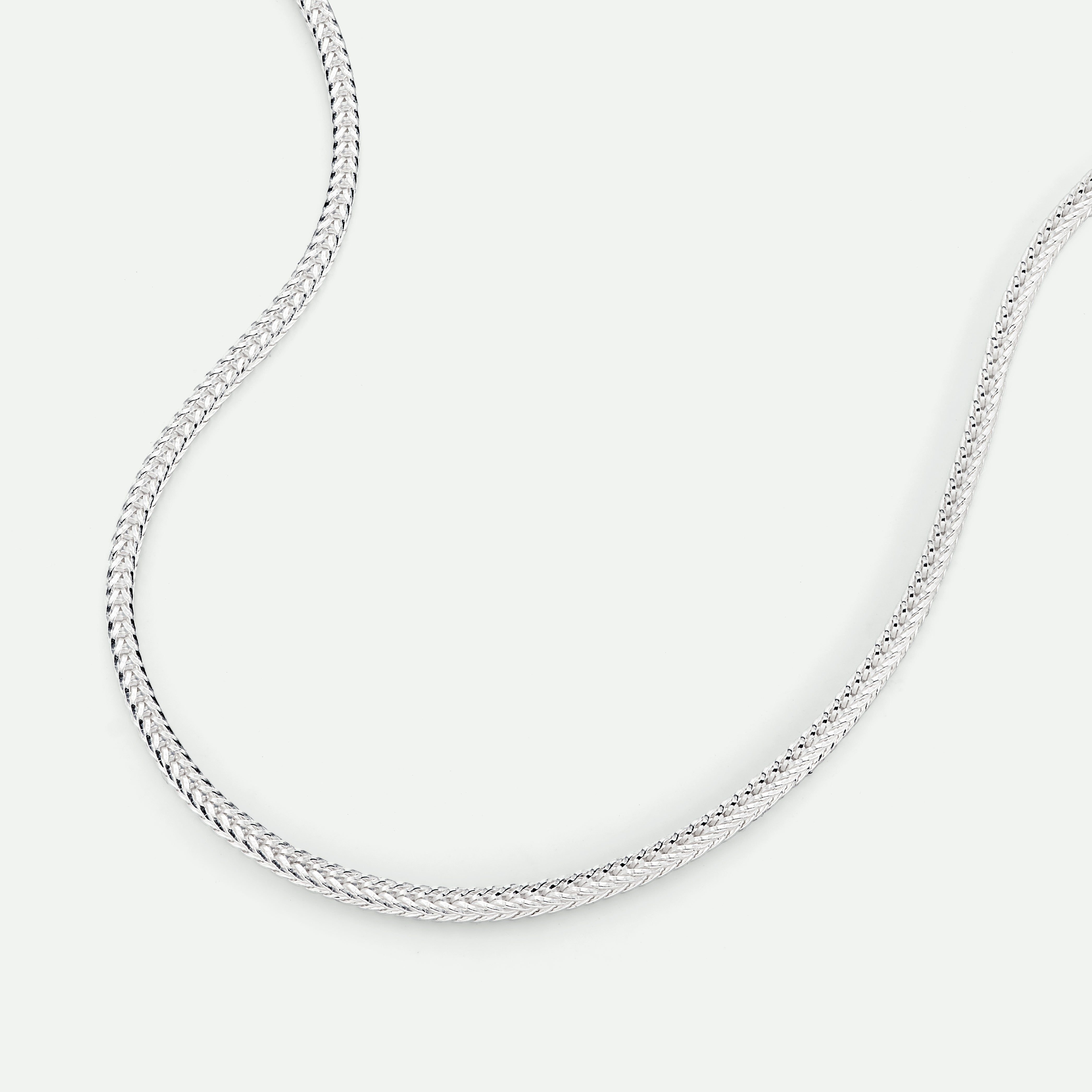 Elegant silver fox tail chain necklace with a unique V-shaped square pattern. Its intricate design and versatile style make it perfect for everyday wear.