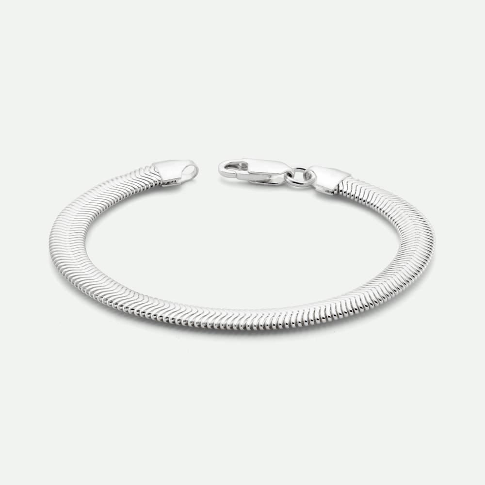 Elegant 7-inch snake bracelet in sterling silver with a sleek, fluid design. Perfect for adding a touch of sophistication to any outfit.
