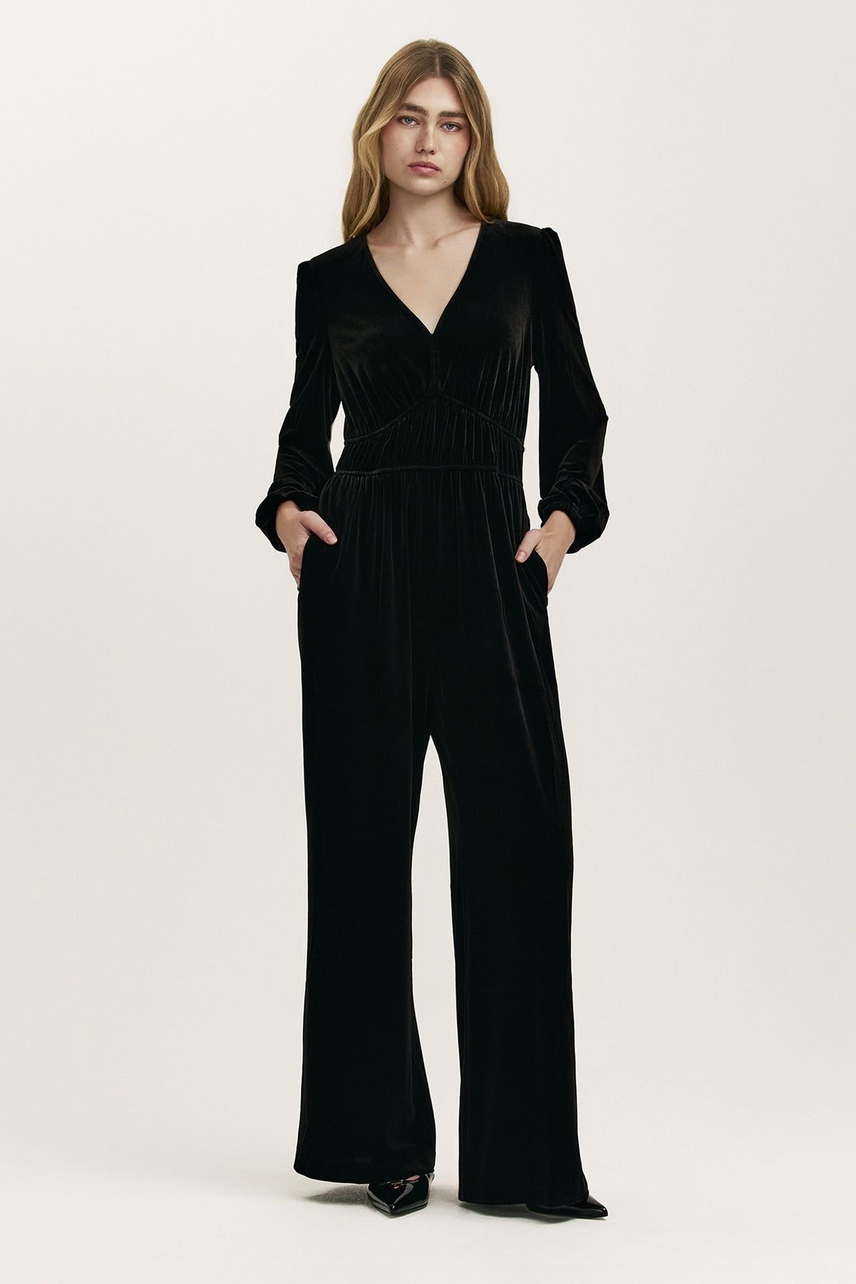 The Finery London Black Velvet Jersey Jumpsuit is ideal for evening, date-night, party.