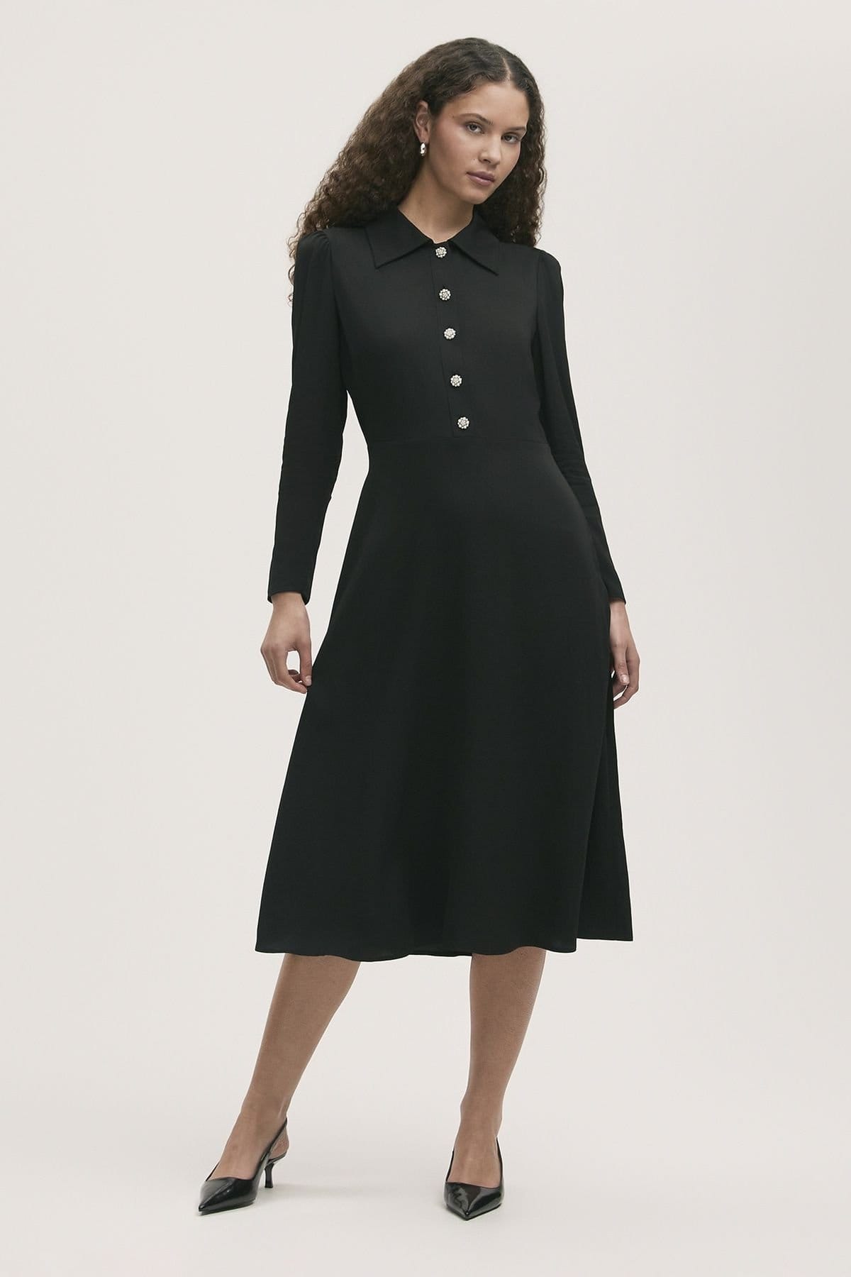 “Pair with black pointed-toe pumps and a structured shoulder bag for a polished office-to-evening look.”